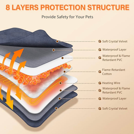 Nobleza Heated pet mat Adjustable Temperature Waterproof Cat Heating Pad with Timer, Indoor Outdoor Chew Resistant Pet Dog Heating Pad for Dogs Cats with Steel Cord