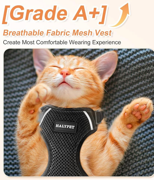 Halypet Cat Harness Small (7-12lb)[ MAX Safety Third Generation ] Escape Proof Soft Adjustable Breathable Comfortable Vest Easy to Wear Kitten Harness for Outdoor Walking Black Small