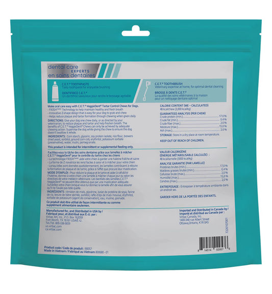 Virbac C.E.T. VeggieDent Fr3sh Dental Chews for Medium Dogs, 30 Count