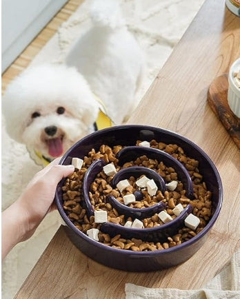 LE TAUCI Dog Bowls Slow Feeder Ceramic, 1.5 Cups Slow Feeding Dog Bowl Small Medium Breed, Puppy Slow Feeder Bowl for Fast Eater, Dog Dishes to Slow Down Eating, Puzzle Dog Food Bowl, Maze Purple