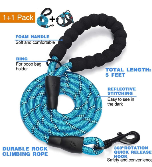 tobeDRI No Pull Dog Harness Adjustable Reflective Oxford Easy Control Medium Large Dog Harness with A Free Heavy Duty 5ft Dog Leash (S (Neck: 13"-18", Chest: 17.5"-22"), Blue Harness+Leash)