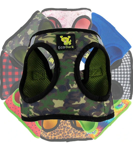 EcoBark Step in Dog Harness - Reflective Soft Luxurious Mesh Dog Harnesses for XXS Dogs - Eco-Friendly Comfort Secure Halter No Pull Adjustable Pet Vest camo