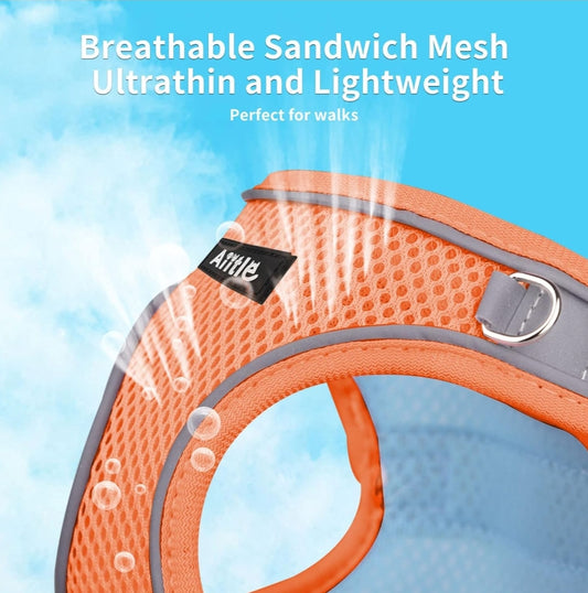 AIITLE Step in Dog Harness and Leash Set - Summer No Pull Escape Proof Vest Harnesses with Soft Mesh and Reflective Bands, Adjustable Pet Outdoor Harnesses for Small and Medium Dogs Orange M