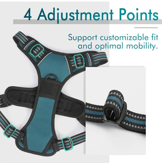 Bolux Dog Harness, No-Pull Reflective Dog Vest, Breathable Adjustable Pet Harness with Handle for Outdoor Walking - No More Pulling, Tugging or Choking (Oceanic Blue, Large (Pack of 1))