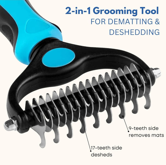 Dog and Cat Dematting Deshedding Brush Tool - Double Sided Undercoat Rake Shedding Comb Mat Remover Deshedder Safe Detangler for Matted Hair/Fur