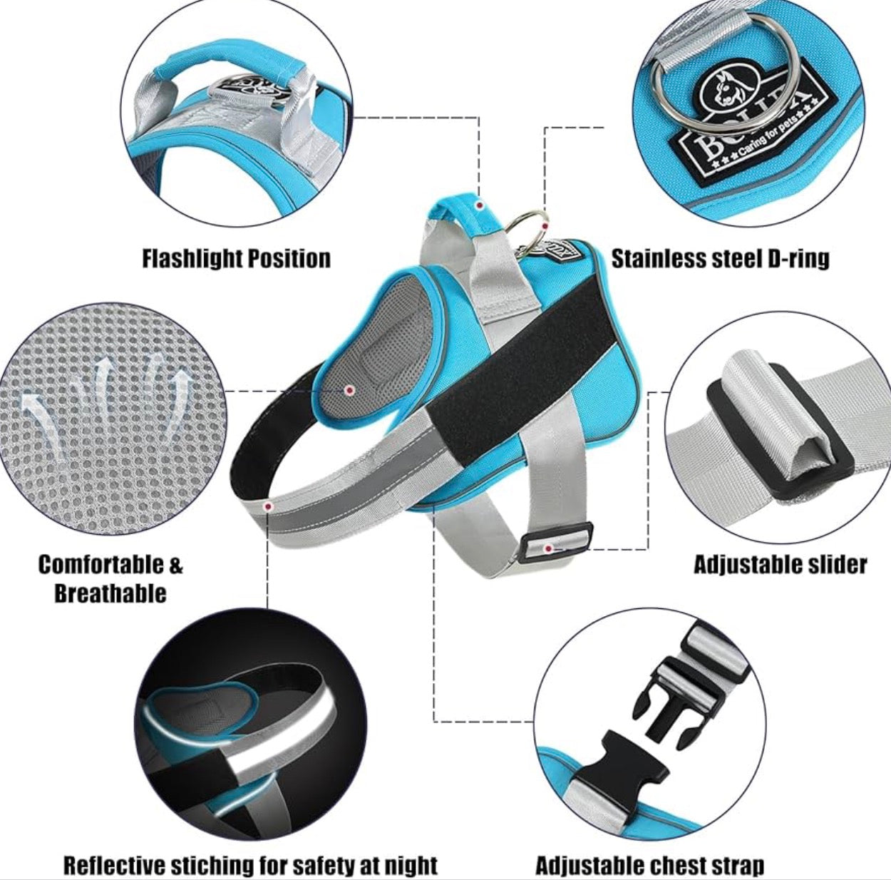 Bolux Dog Harness, size Large No-Pull Reflective Dog Vest, Breathable Adjustable Pet Harness with Handle for Outdoor Walking - No More Pulling, Tugging or Choking (OceanicBlue, Large