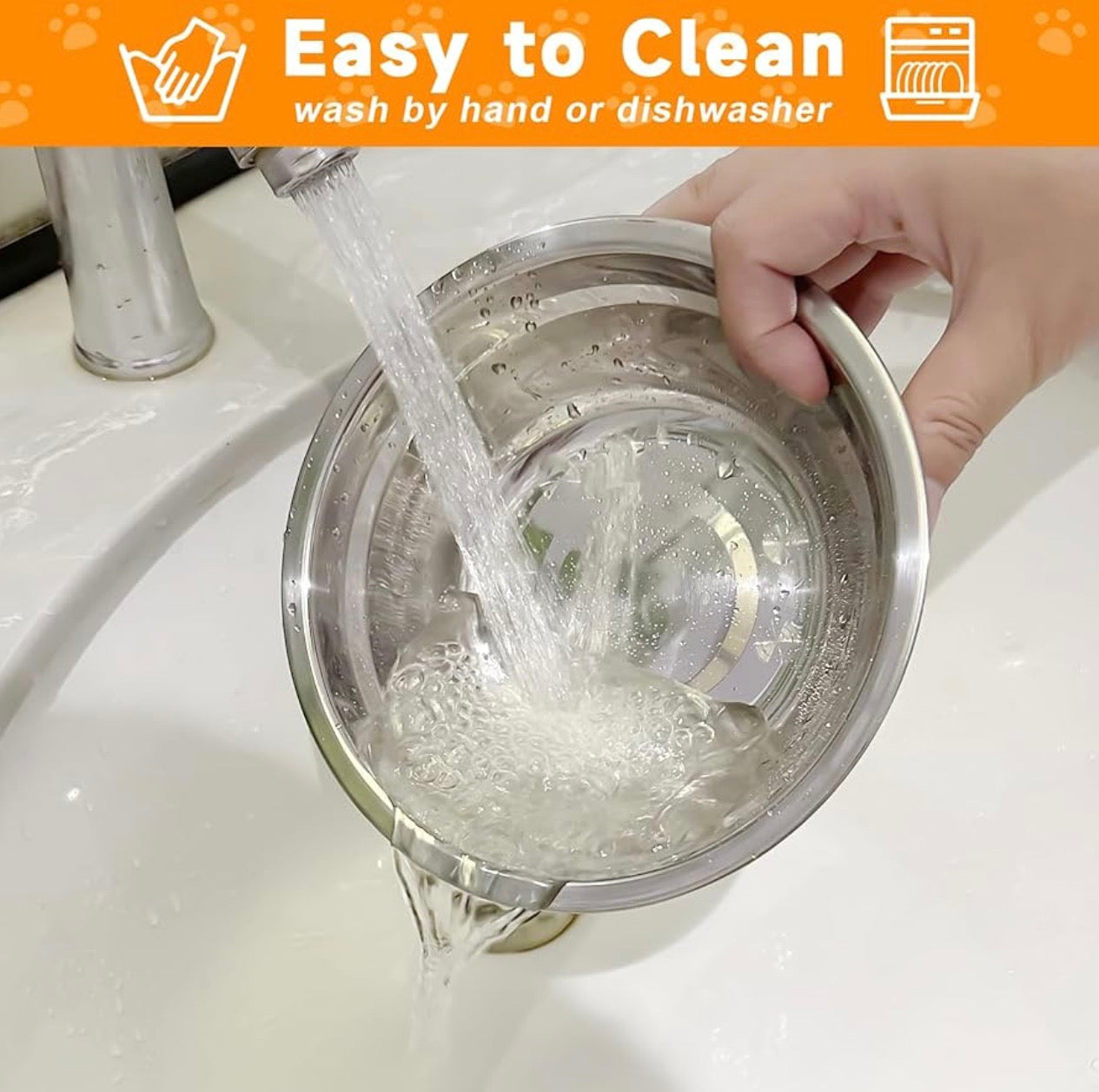 - Easy to Clean and Raised Station: The stainless steel bowls are removable, it’s easy to take them out to wash and keep clean, what’s more, it’s also convenient to add food or water. The bowls are dishwasher safe. The raised stand provides a comfortable feeding height which helps to reduce neck burden, offers easy eating and comfortable licking for your pets.