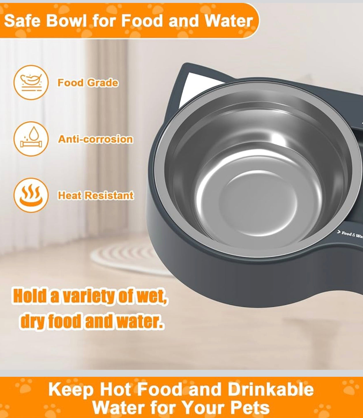 - Safety Stainless Steel Bowl: Pet heated bowl is made of BPA free pp plastic with high quality stainless steel bowl which is anti-corrosion and heat resistant, it is safe for your pets to drink water and eat food. With anti-chew cord, you need not worry about the wire is bite by your pets. And every product has passed strict testing before leaving the factory.