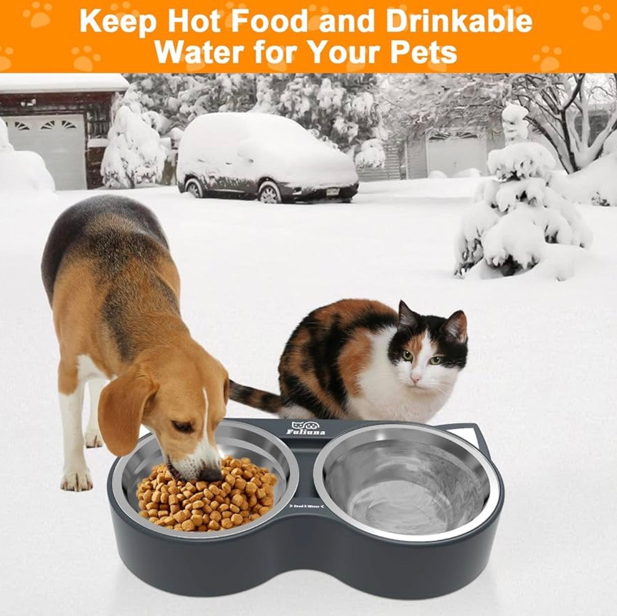 Fuliuna Heated Pet Bowl, Outdoor Heated Pet Bowl with Double Stainless Steel Bowl 23 OZ, Water Food Bowls for Pets,Thermal Pet Bowl Provide Drinkable Water and Hot Food in Winter
