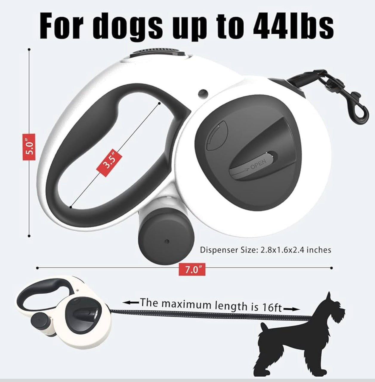 HCY&WLD Upgrade 4-in-1 Retractable Dog Leash with LED Light 16 ft Heavy Duty Dog Leash with Anti-Slip Handle for Dogs up to 44 lbs, 360° Tangle-Free, One Button Brake & Lock