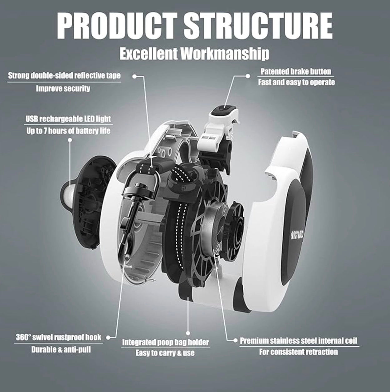 - đă360° Tangle-Free 16 ft Retractable Leashă16 ft high strength nylon tape with durable rustproof swivel hook. U retraction opening design allows you to control your dog from any angle. Heavy duty premium stainless steel internal coil for consistent retraction. This is a great design for those dog lovers who want to give their furry friend more freedom while maintaining safety and control at all times.