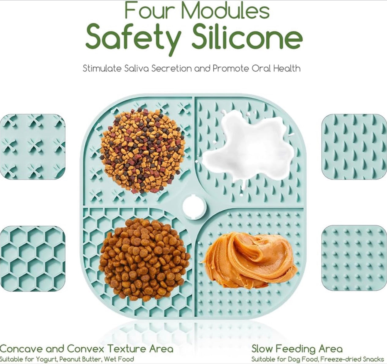 - 【Lick Mat & Food Diversity】 This slow feeder dog bowls is equipped with a non-toxic and safe silicone lick mat, which uses four unique texture designs to help pets scrape off foreign objects on their tongues during licking, promoting a fresh and healthy oral cavity. Suitable for all kinds of raw food, wet food, dry food.