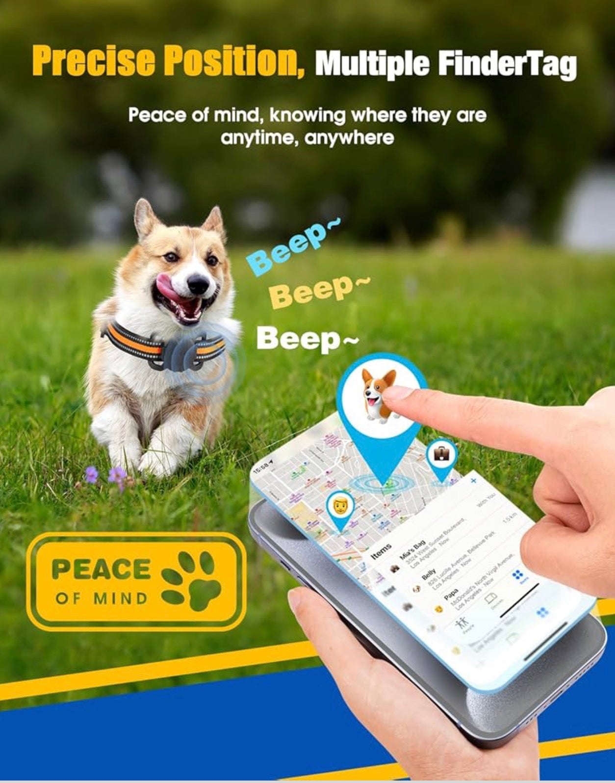 PawGaze GPS Tracker Compatible with Apple iOS FindMy App, Real-Time Anti-Lost Tracking Device FinderTag for Dogs, Cats, Pets, Luggage, Items, with Silicone Cover for Pets' Collars / School Bag Straps